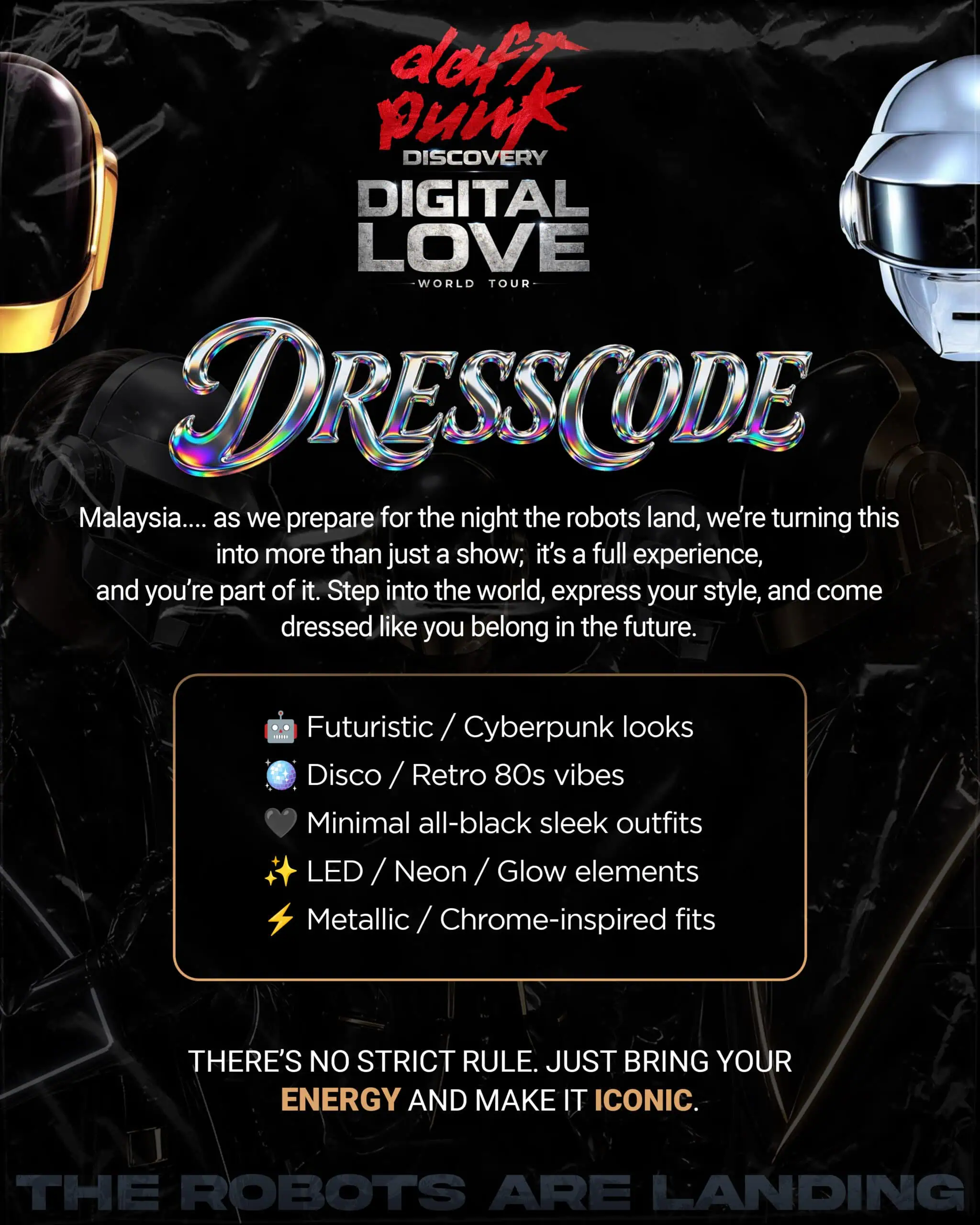 For one night only, the robots land in Malaysia, bringing with them a journey through timeless electronic anthems, futuristic visuals, and an atmosphere that transcends the ordinary.